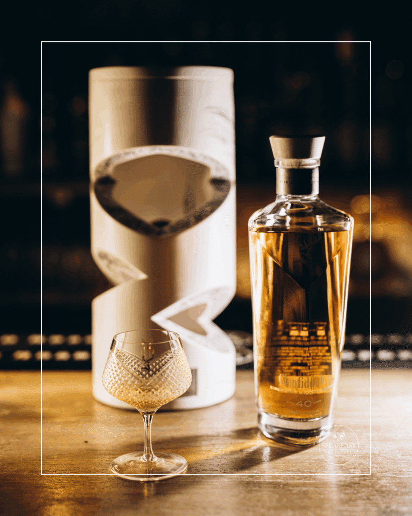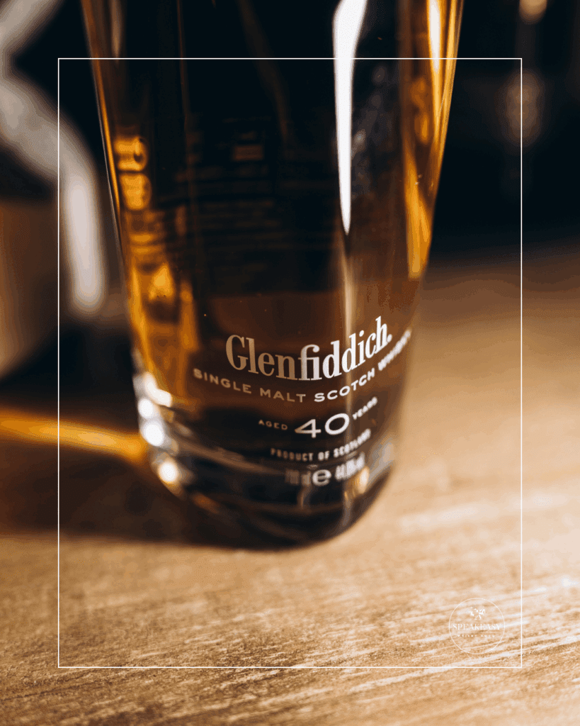 Są wieczory, które na stałe zapisują się w annałach naszego baru. Wieczory, kiedy atmosfera tajemnicy, charakter naszego XVII-wiecznego wnętrza i historia zamknięta w szkle tworzą jedność. Taki właśnie był miniony weekend w Speakeasy Bar Legnica, podczas którego mieliśmy zaszczyt i absolutną przyjemność degustować prawdziwy klejnot ze Speyside – Glenfiddich 40 Year Old.